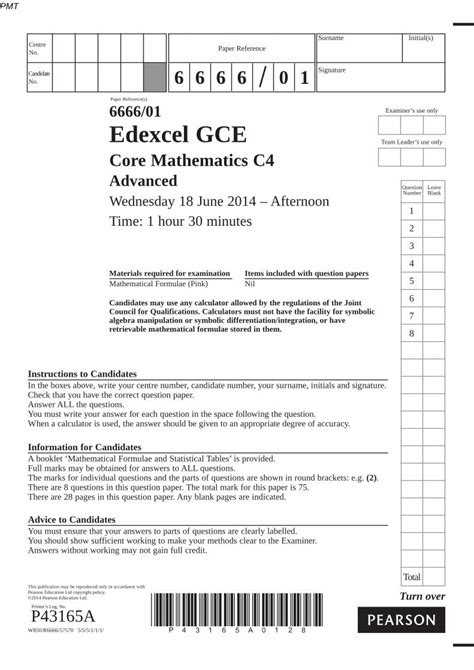 Read edexcel c4 advanced paper january 2014 solutions Hardcover BookBoon